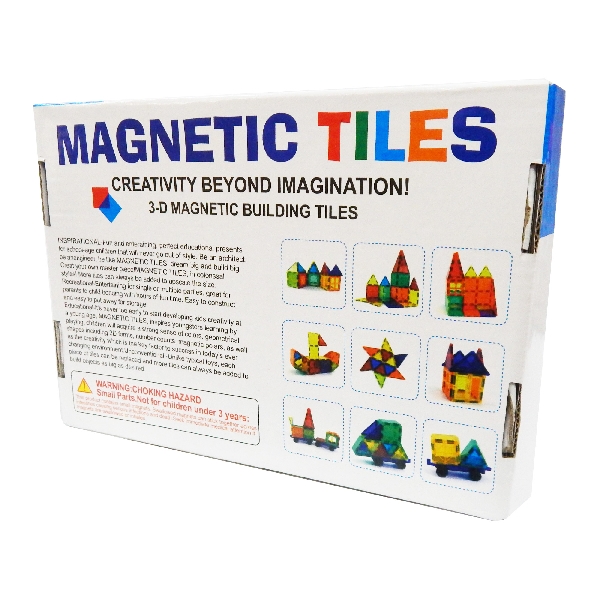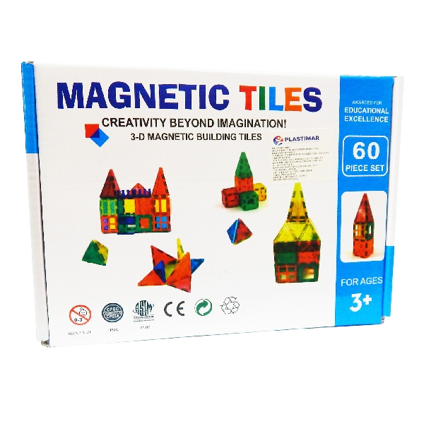 60 piezas de construcción magnéticas translúcidas en diferentes formas y colores.