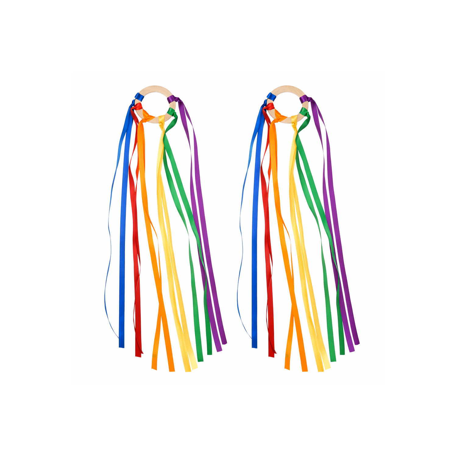 Elemento didáctico diseñado para estimular el juego libre, la expresión corporal y el desarrollo sensorial en niños. Compuesto por un aro de madera de superficie lisa y bordes redondeados, del cual se desprenden cintas de colores, permite realizar movimientos amplios que favorecen la coordinación, el ritmo y la creatividad.