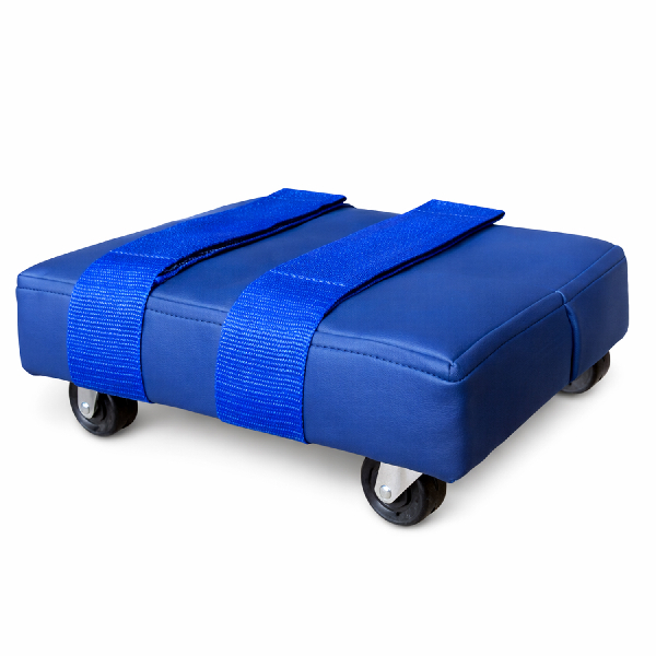 Cuenta con correas con velcro para una sujeción segura y 4 ruedas que permiten un deslizamiento estable.
