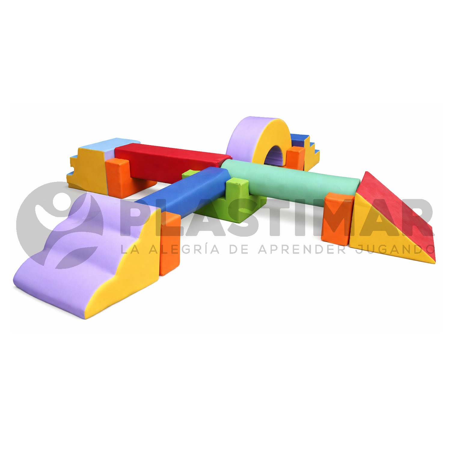 Set compuesto por módulos diseñados para estimular y fortalecer el gateo, favoreciendo la postura y el movimiento adecuado en edades tempranas. Su forma y tamaño permiten desarrollar coordinación, equilibrio y control corporal en un entorno seguro.