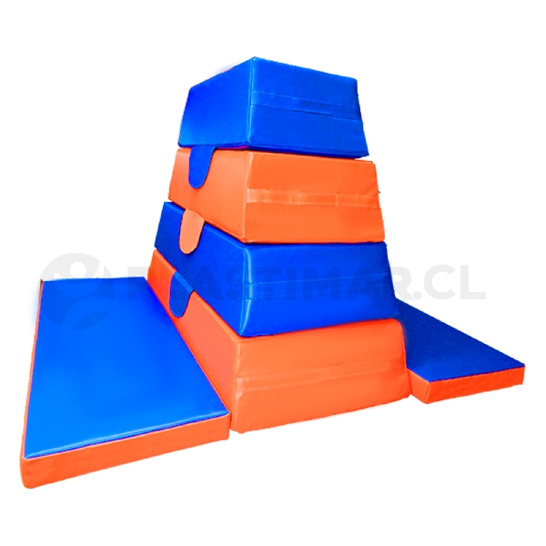 Este material es adecuado para contextos educativos, deportivos y terapéuticos, ya que favorece el desarrollo de la motricidad gruesa, la coordinación, el control postural y la confianza corporal. Las piezas se adhieren entre sí mediante velcros N°5 para asegurar su sujeción y cuentan con manillas que facilitan su traslado. La posibilidad de variar alturas permite adaptar el desafío según el nivel y la actividad propuesta.