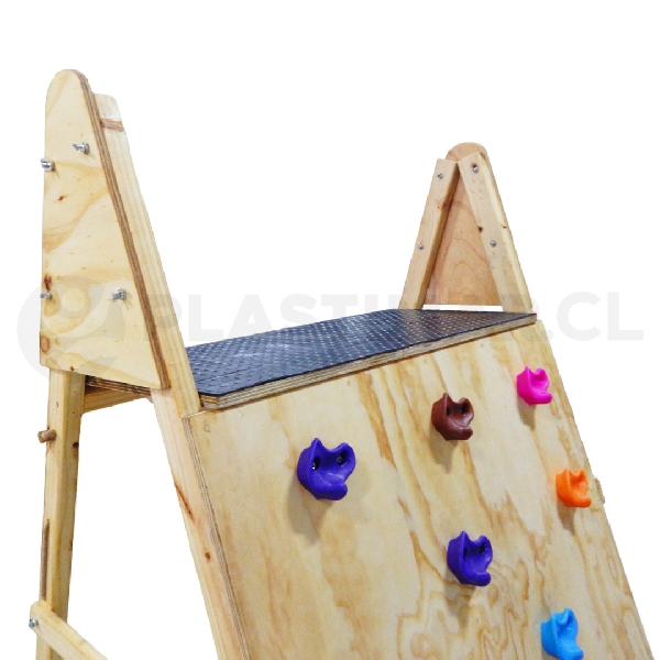 La incorporación de red para trepar, lianas de cuerda y presas de escalada favorece la planificación motriz, la orientación espacial y la interacción durante el juego guiado. El descanso en la cima y las barras laterales de seguridad aportan estabilidad y contención durante la actividad, mientras que las colchonetas de seguridad complementan un entorno protegido para su uso supervisado.
