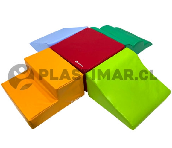Set compuesto por módulos diseñados para estimular y fortalecer el gateo en bebés. Su forma y dimensiones favorecen una postura adecuada, promoviendo el desarrollo de habilidades motoras gruesas, coordinación, equilibrio y control corporal a través del juego activo.