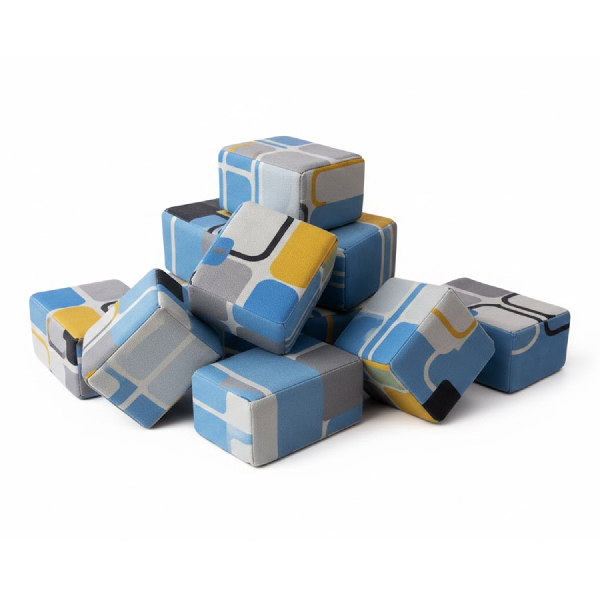 Set de rectángulos de espuma con cubierta de género, diseñados para favorecer la estimulación motriz y el desarrollo de la coordinación en niños y niñas. Permiten trabajar habilidades de manipulación, construcción y exploración a través del juego activo.