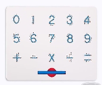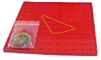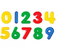 1 base de madera con tarugos, 10 números de madera y 55 figuras geométricas de madera.