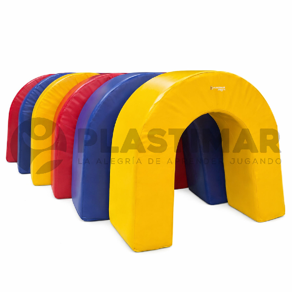 Módulos diseñados para favorecer la coordinación del movimiento a través de la reptación y el gateo. Al invertir el conjunto, los más pequeños pueden iniciarse en actividades de balanceo, estimulando el desarrollo motriz y el control corporal en un entorno seguro.