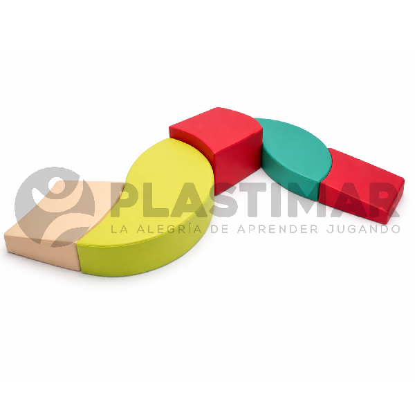 Set de 5 estructuras suaves, acolchadas, antideslizantes y de geometría redondeada que, al combinarse, generan diversos circuitos para estimular el gateo y el movimiento. Favorece el desarrollo motriz, el equilibrio y la coordinación en entornos educativos y terapéuticos.
