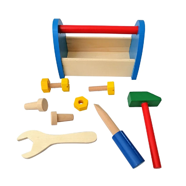 La Caja de herramientas tipo lustrín es un recurso pedagógico diseñado para introducir a los niños en el juego simbólico y la resolución de problemas. A través de la manipulación de piezas de madera, este set fomenta el desarrollo de la motricidad fina y la coordinación óculo-manual al realizar movimientos de enroscar, martillar y ajustar, simulando tareas de construcción y reparación.